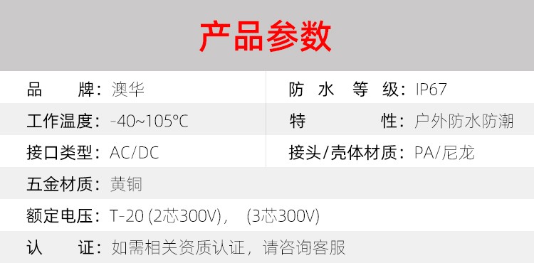 AHUA澳華公司專業(yè)生產(chǎn)LED防水插頭連接器、路燈模組分線盒、工控防水公母接頭、光伏航空插頭、新能源防水電源連接線、植物生長燈連接線、畜牧養(yǎng)殖連接線、汽車線束。工廠自有模具制造、電線電纜押出、大型注塑、五金制造,雙生產(chǎn)基地,可來圖來樣個(gè)性化定制,國家高新技術(shù)規(guī)模企業(yè)!