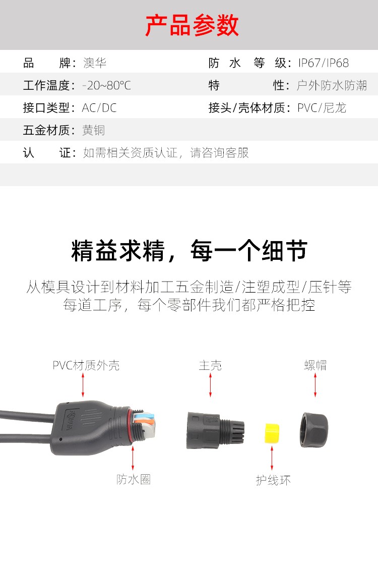 AHUA澳華公司專業(yè)生產(chǎn)LED防水插頭連接器、路燈模組分線盒、工控防水公母接頭、光伏航空插頭、新能源防水電源連接線、植物生長(zhǎng)燈連接線、畜牧養(yǎng)殖連接線、汽車線束。工廠自有模具制造、電線電纜押出、大型注塑、五金制造,雙生產(chǎn)基地,可來(lái)圖來(lái)樣個(gè)性化定制,國(guó)家高新技術(shù)規(guī)模企業(yè)!