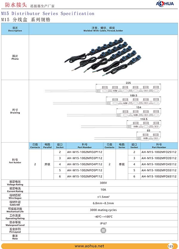AHUA澳華公司專業(yè)生產(chǎn)LED防水插頭連接器、路燈模組分線盒、工控防水公母接頭、光伏航空插頭、新能源防水電源連接線、植物生長燈連接線、畜牧養(yǎng)殖連接線、汽車線束。工廠自有模具制造、電線電纜押出、大型注塑、五金制造,雙生產(chǎn)基地,可來圖來樣個(gè)性化定制,國家高新技術(shù)規(guī)模企業(yè)!