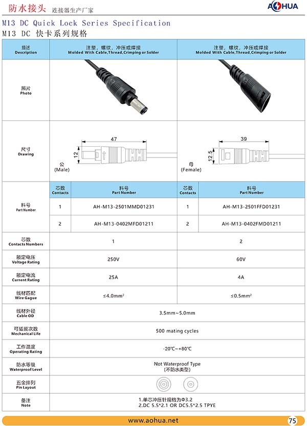 AHUA澳華公司專業生產LED防水插頭連接器、路燈模組分線盒、工控防水公母接頭、光伏航空插頭、新能源防水電源連接線、植物生長燈連接線、畜牧養殖連接線、汽車線束。工廠自有模具制造、電線電纜押出、大型注塑、五金制造,雙生產基地,可來圖來樣個性化定制,國家高新技術規模企業!