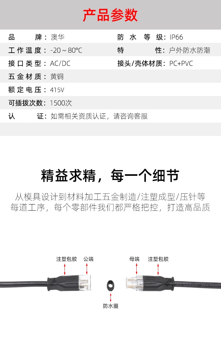AHUA澳華公司專業生產LED防水插頭連接器、路燈模組分線盒、工控防水公母接頭、光伏航空插頭、新能源防水電源連接線、植物生長燈連接線、畜牧養殖連接線、汽車線束。工廠自有模具制造、電線電纜押出、大型注塑、五金制造,雙生產基地,可來圖來樣個性化定制,國家高新技術規模企業!