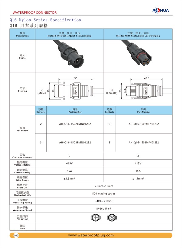 AHUA澳華公司專業生產LED防水插頭連接器、路燈模組分線盒、工控防水公母接頭、光伏航空插頭、新能源防水電源連接線、植物生長燈連接線、畜牧養殖連接線、汽車線束。工廠自有模具制造、電線電纜押出、大型注塑、五金制造,雙生產基地,可來圖來樣個性化定制,國家高新技術規模企業!