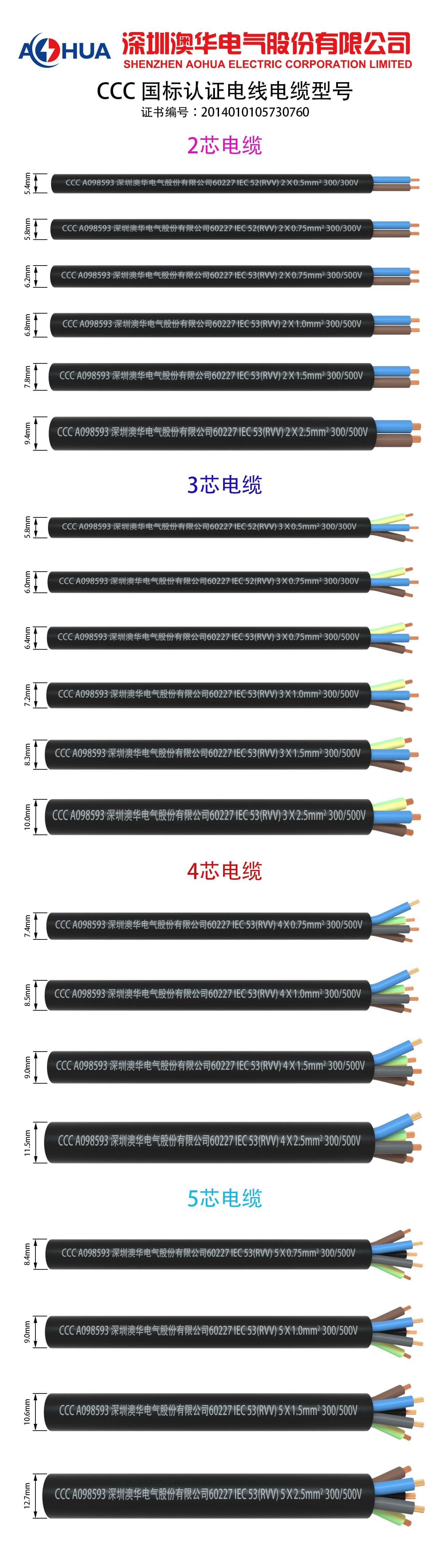 AHUA澳華國標(biāo)純銅60227 IEC 2 3 4 5芯300/300電源線電纜