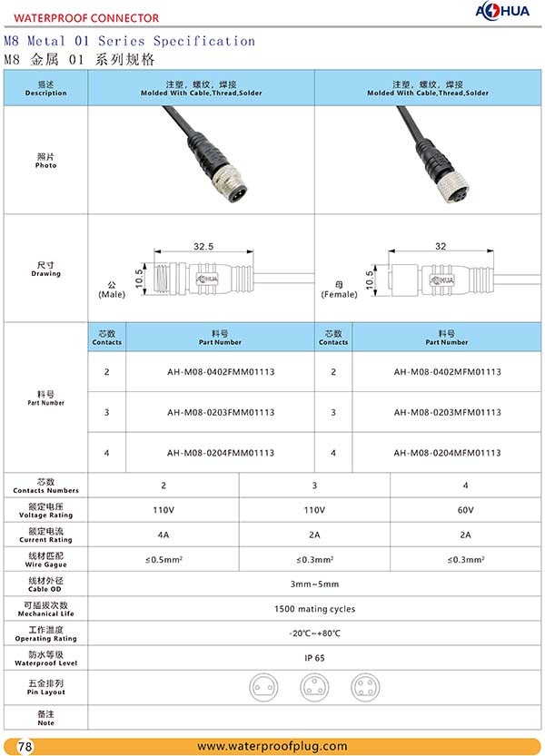 首頁 產品中心 > M系列防水連接器 > M08