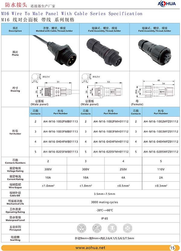 AHUA澳華公司專業生產LED防水插頭連接器、路燈模組分線盒、工控防水公母接頭、光伏航空插頭、新能源防水電源連接線、植物生長燈連接線、畜牧養殖連接線、汽車線束。工廠自有模具制造、電線電纜押出、大型注塑、五金制造,雙生產基地,可來圖來樣個性化定制,國家高新技術規模企業!
