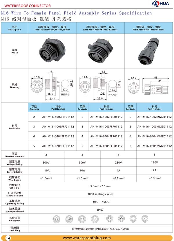 AHUA澳華M16養(yǎng)殖防水連接器LED電源防水接頭設(shè)備航空插頭