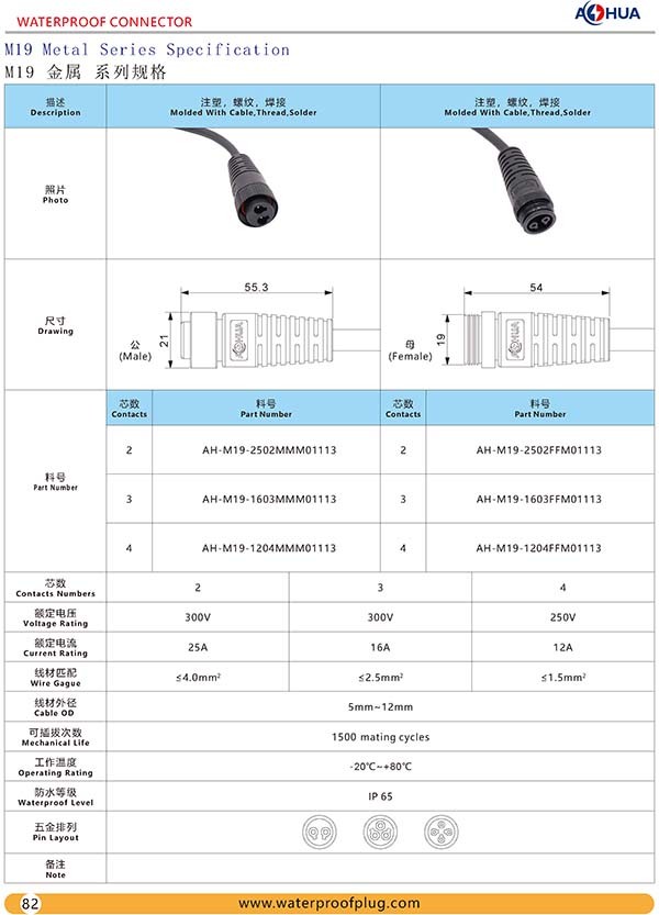 首頁 產品中心 > M系列防水連接器 > M19