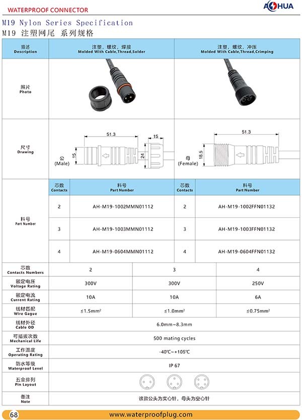 AHUA澳華公司專業(yè)生產LED防水插頭連接器、路燈模組分線盒、工控防水公母接頭、光伏航空插頭、新能源防水電源連接線、植物生長燈連接線、畜牧養(yǎng)殖連接線、汽車線束。工廠自有模具制造、電線電纜押出、大型注塑、五金制造,雙生產基地,可來圖來樣個性化定制,國家高新技術規(guī)模企業(yè)!